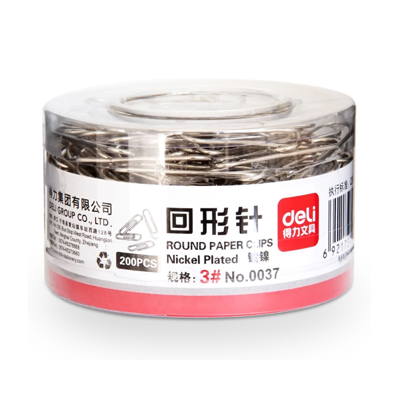 得力(deli)0037 装订机打孔类 29mm镀镍回形针 3#金属曲别针 200枚/筒 自营