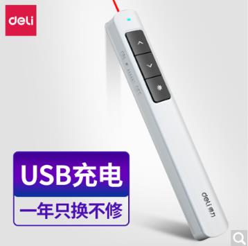 得力/deli 2808L 激光笔 红光充电款激光翻页笔 白色 自营