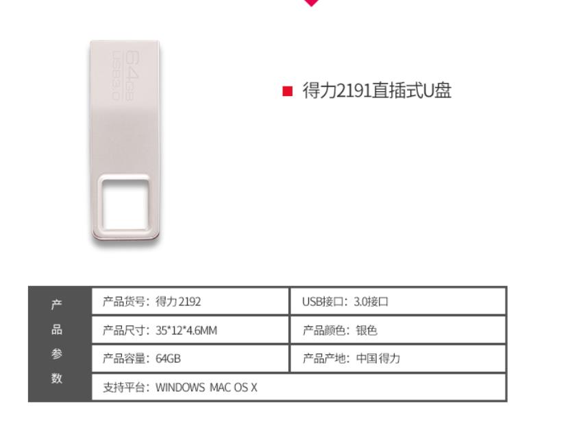 得力 (deli) 2192U盘/存储卡U盘64G 自营