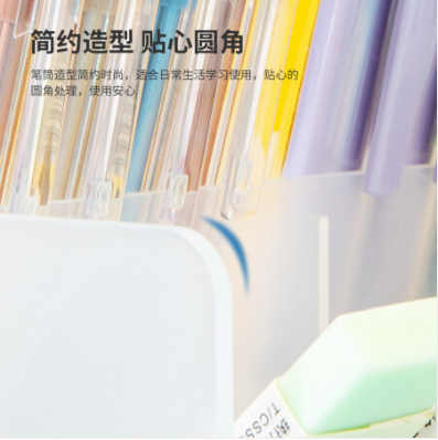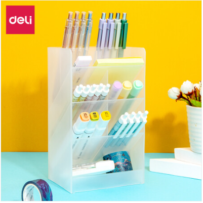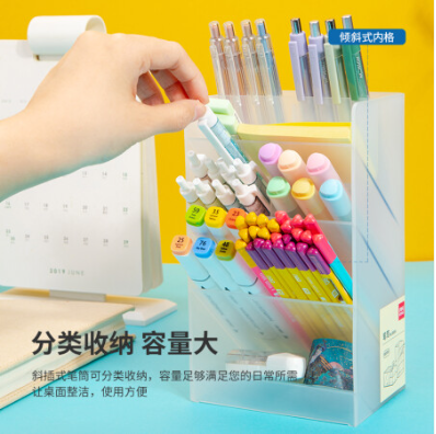 得力/deli 8934 笔筒双联斜插式 桌面收纳笔架 多功能化妆收纳盒 透明 自营