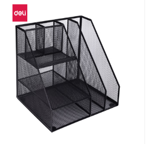 得力/deli 79075 文件筐 多功能金属网材组合式文件框办公室桌面多层资料架子分层收纳文件架带笔筒 自营