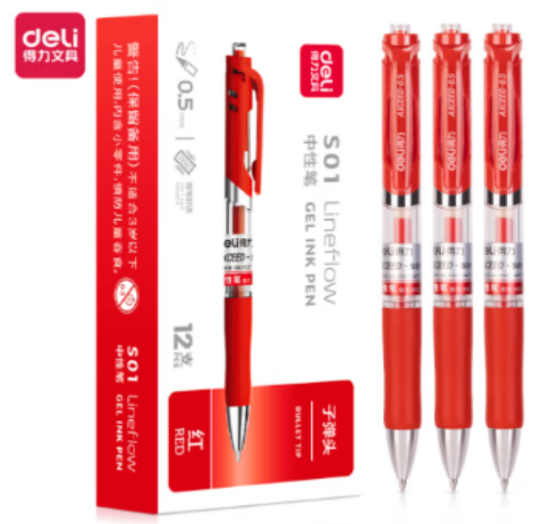 得力/deli S01 书写用笔类用具 中性笔0.5mm红色 12支/盒 自营